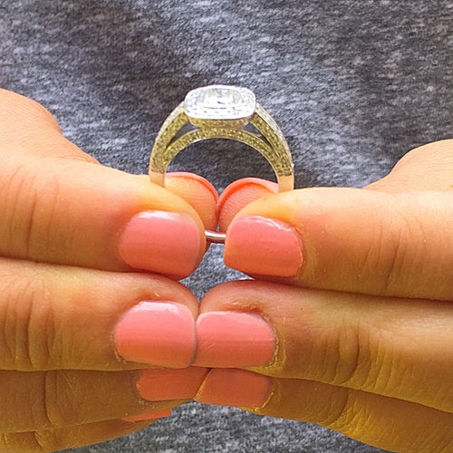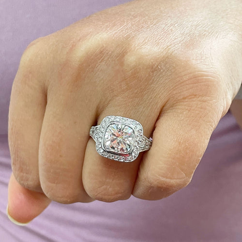 14k solid white gold cushion cut diamond engagement ring bezel set halo pave natural diamonds three sided diamonds pave 1.70ctw