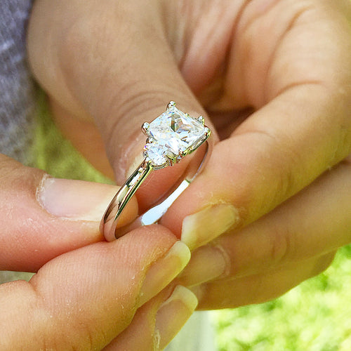 14k solid white gold princess and round cut diamond engagement ring three stone style bridal wedding anniversary ring 1.50ctw