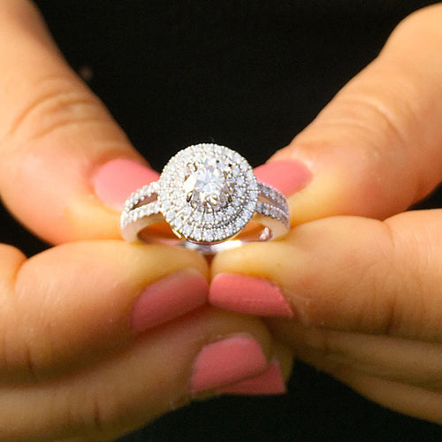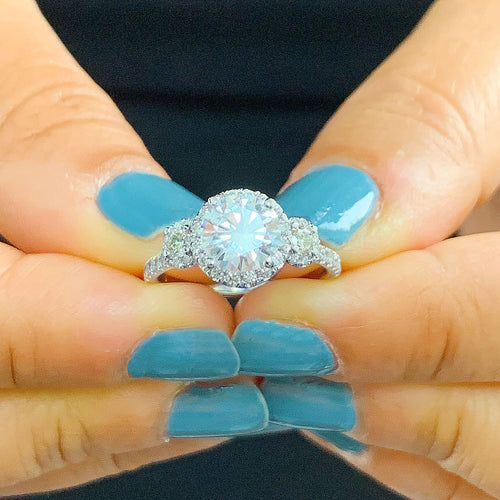14k solid white gold round cut Charles and Colvard moissanite and diamond engagement ring split shank double halo Natural Diamonds 1.25ct