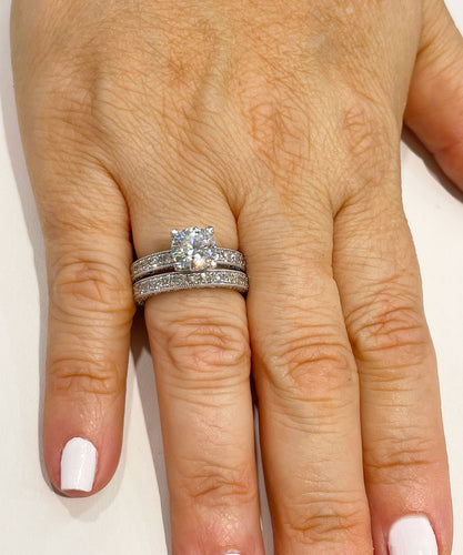 14k Solid White Gold Round Cut Moissanite and Round Cut Natural Diamond Engagement Ring and band, Bridal Set 3.50ctw