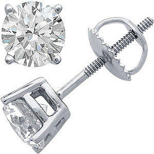 14k white gold 1.00ctw round cut diamonds studs earrings screw backs prong set Wedding, Bridal, Anniversary, Prong, Natural Diamonds