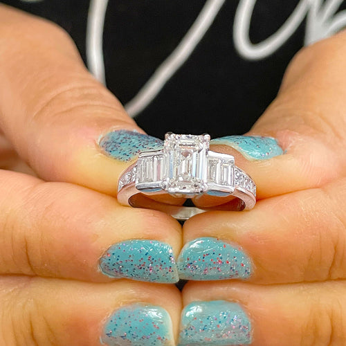14k White Gold Emerald Cut Forever One Moissanite And Princess And Baguettes Natural Diamond Engagement Ring 2.75ctw