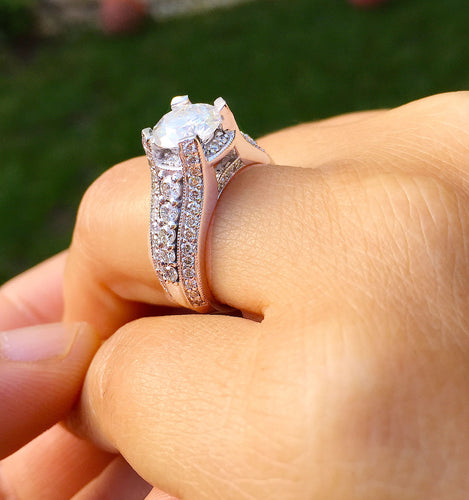 14k solid and heavy white gold round cut moissanite and diamond engagement ring deco, anniversary wedding, propose, bridal, 2.70ctw