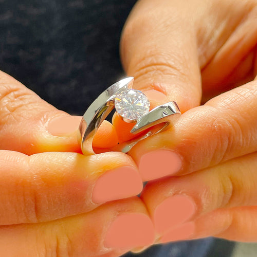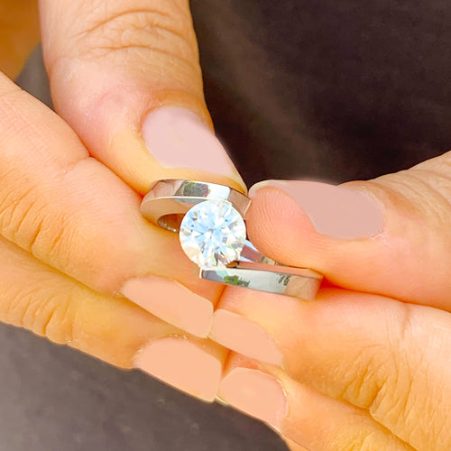 14k Solid And Heavy White Gold Round Cut Moissanite Engagement Ring Tension Set, Propose, Anniversary, Classy 1.00ctw