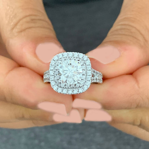 Double Halo Women's 14k solid white gold cushion cut forever one moissanite and natural diamond engagement ring Bridal Wedding Halo 2.80ct