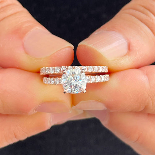 14k Solid Rose Gold Cushion Cut Moissanite and Natural Diamond Engagement Ring And Band Bridal Wedding 2.20ct