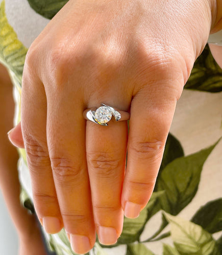 14k Solid White Gold Round Moissanite Engagement Ring Tension Set, Propose, Anniversary, Classy 1.00ctw