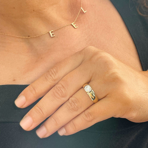 14k Solid Yellow Gold Round Cut Moissanite Engagement Ring Semi Bezel Set, Bridal, Wedding 1.25ct