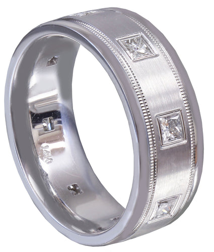14k Whie Gold Princess Cut Diamond Mens Band Ring Eternity Filigree Wedding, Bridal, Anniversary, Prong, Natural Diamonds 0.40ct 7mm