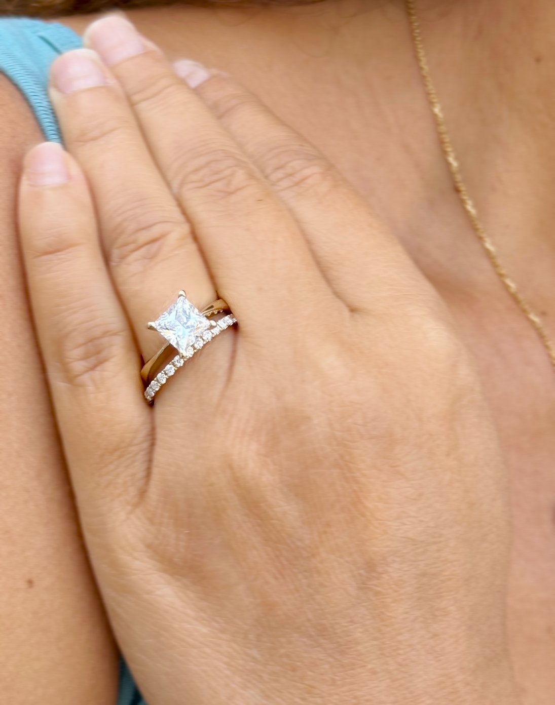 Celebrate timeless elegance with this Princess Cut Diamond Solitaire Engagement Ring and Matching Band Bridal Set, beautifully crafted in 14k solid yellow gold. The sharp, clean lines of the princess-cut center diamond create a stunning focal point, offering brilliance and fire from every angle. With a total weight of 2.25ctw and an IGI Certified center stone, this set delivers exceptional quality and sparkle that will last for generations.