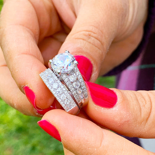GIA/IGI 14k White Gold Round Cut Diamond Engagement Ring Wedding, Anniversary Bridal Set 4.50ctw F-VS2