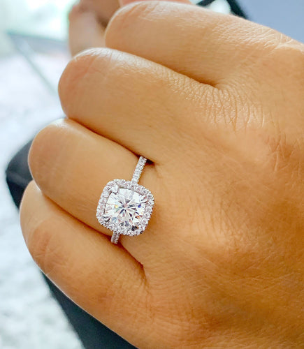 GIA/IGI Certified 14k Solid White Gold Cushion And Round Cut Diamond Engagement Ring Bridal Wedding Halo 2.00ct F-VS2