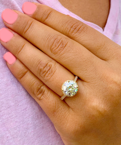 GIA/IGI Certified 14K Solid Yellow Gold Round Cut Diamond Engagement Ring Halo Prong Bridal Wedding Halo 2.50ctw F-VS2