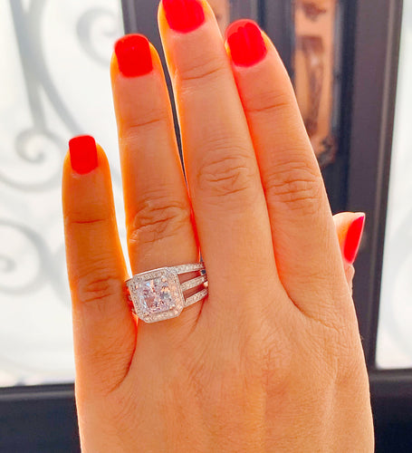 GIA/IGI Certified Triple Shank Style 14k Solid White Gold Princess And Round Cut Diamonds Engagement Ring Prong Set Halo 2.80ctw F-VS2