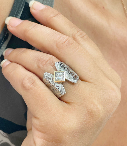 GIA/IGI Certified 14k Solid White Gold Princess And Round Cut Diamond Engagement Ring And Band, Wedding, Anniversary 2.50ct F-VS2
