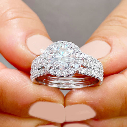 GIA/IGI Certified 14k Solid White Gold Round Cut Diamond Engagement Ring And Band Bridal Wedding Double Halo 3.25cttw F-VS2