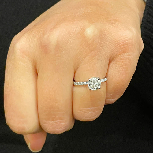 Minimalist 14K Solid White Gold Round Cut Moissanite and Natural Diamond Engagement Ring Bridal, Wedding 1.45ctw