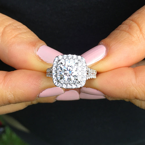 Large 2.65Ctw Women's 14k solid white gold cushion cut moissanite and natural diamond engagement ring Bridal Wedding Halo