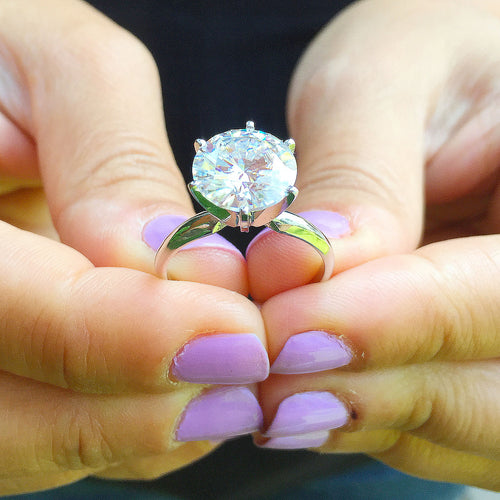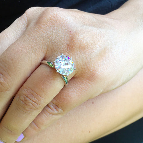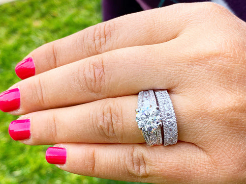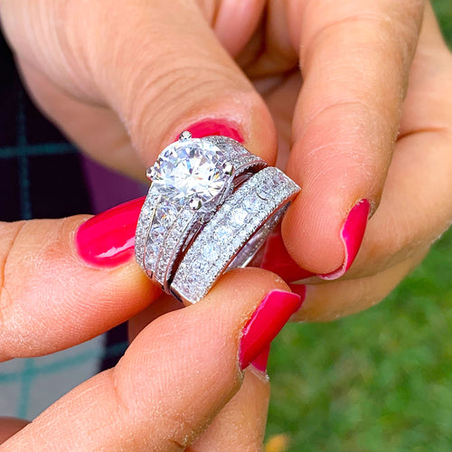 Large FIVE Carat set in 14k solid white gold round cut moissanite engagement ring solitaire, bridal set, wedding, anniversary Propose