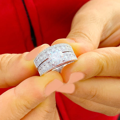 Large 14k solid white gold Round cut Three Sided eternity Moissanite band anniversary Wedding, Anniversary, Bridal 2.75ctw 3.8mm width