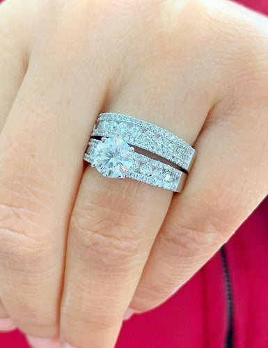 Large 14k Solid white gold round cut moissanite and natural diamond engagement ring Wedding, Anniversary Bridal Set 3.10ctw
