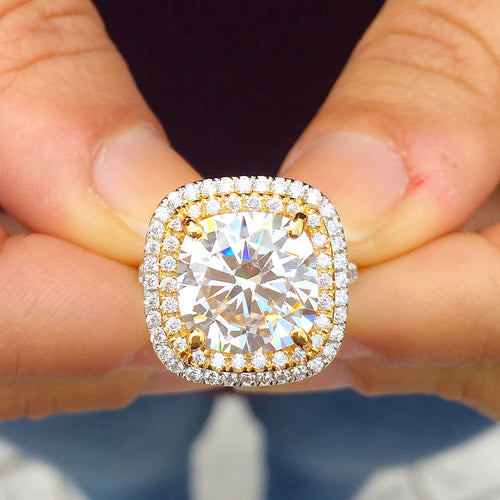 Huge Women's 14k solid white gold cushion cut moissanite and natural diamond engagement ring and Band Bridal Wedding Halo 7.10ct
