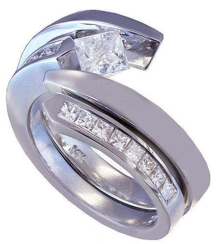 14k white gold princess cut diamond engagement ring and band tension set 1.25ctw