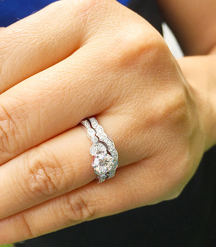 14k white gold forever one moissanite round cut and diamonds engagement ring and band, wedding, bridal set, propose, anniversary 1.65cTW