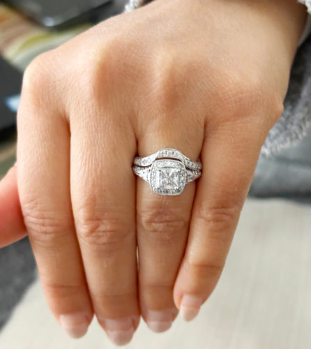 Princess Cut And Round Cut Sides Diamond Engagement Ring And Matching Band Wedding Ring Set IGI Certified 14k Solid White Gold 2.50ctw