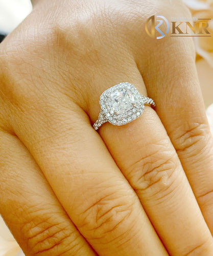 GIA/IGI Certified 14K Solid White Gold Cushion and Round Cut Diamonds Engagement Ring Double Halo 1.80ctw F-VS2