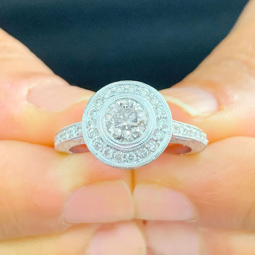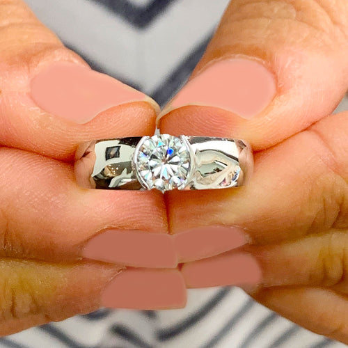 GIA/IGI Certified 14k Solid Heavy White Gold Round Cut Diamond Semi Bezel Engagement Ring Wedding 0.75ct F-VS2