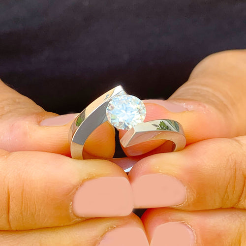 GIA/IGI Certified 14k Solid And Heavy White Gold Round Cut Engagement Ring Tension Set Elegant Solitaire 1.00ctw F-VS2
